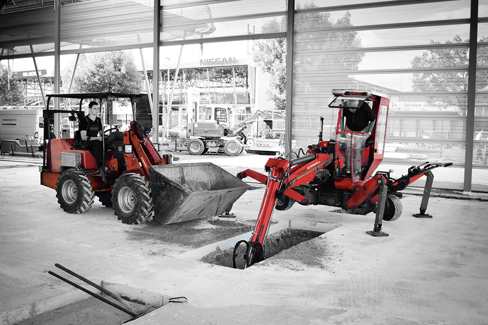 Gulvet skæres præcist op, hvorefter hullet graves. Kassetten nedsænkes, nivelleres og fastgøres.